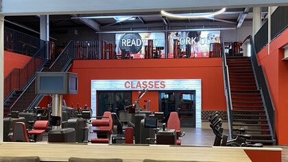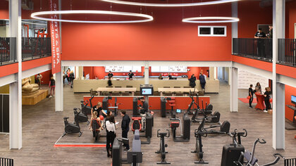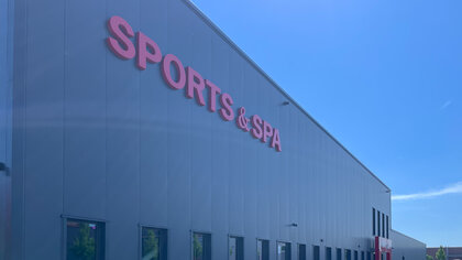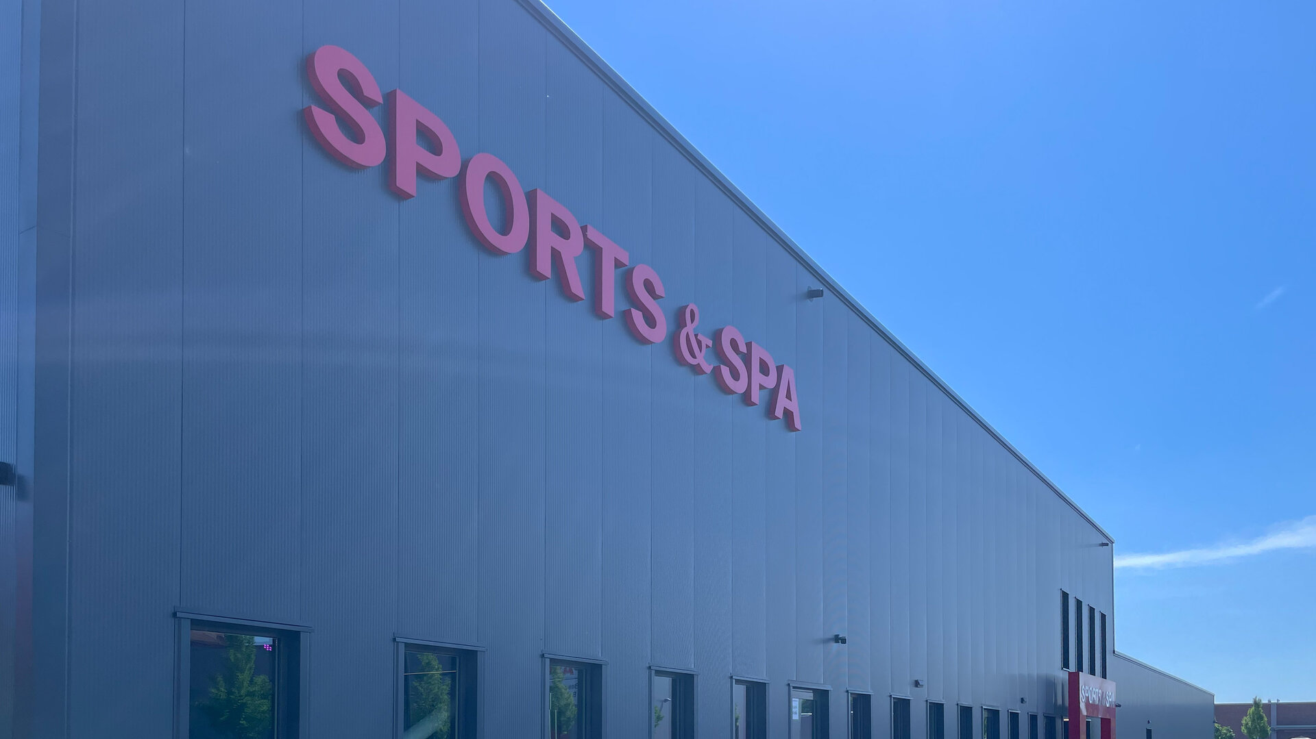 Außenansicht des Sports & Spa in der Südstadt. Das Bauunternehmen Gundlach errichtete dieses Fitnessstudio mit glatter schwarzer Fassade.