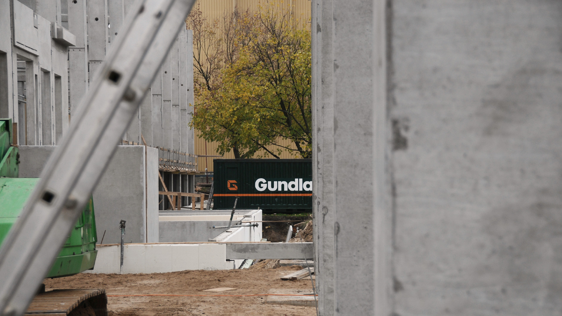 - Stahlbetonfertigteilkonstruktion mit Fassade aus Porenbeton