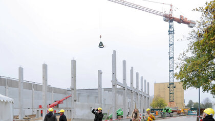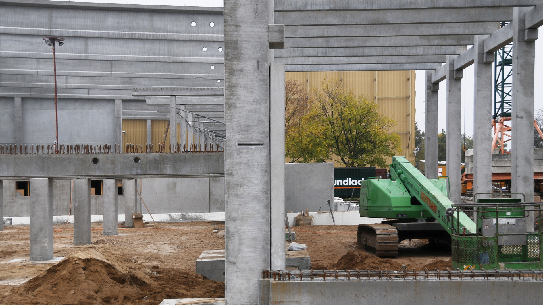 - Besondere logistische Anforderung: Bodenplatte aus 2.525 m³ Beton (entspricht Sohlplatten für ca. 459 Reihenhäuser) wurde innerhalb von 24 Stunden im Dauerbetrieb erstellt