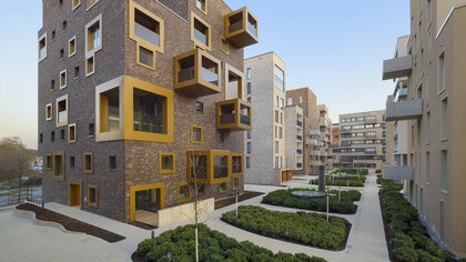 - Gebäude A1, A2, B1, B3 und C1 erhalten eine Klinkerfassade von Hebrok