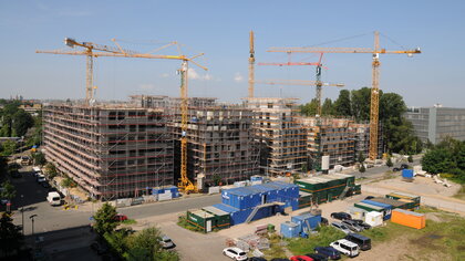 Baubeginn: Tiefgarage: November 2012, Gebäude C1, B1, B2 und A1: November 2013, Gebäude A2, B3, B4 und C2: Mai 2014