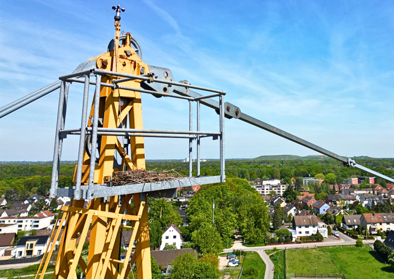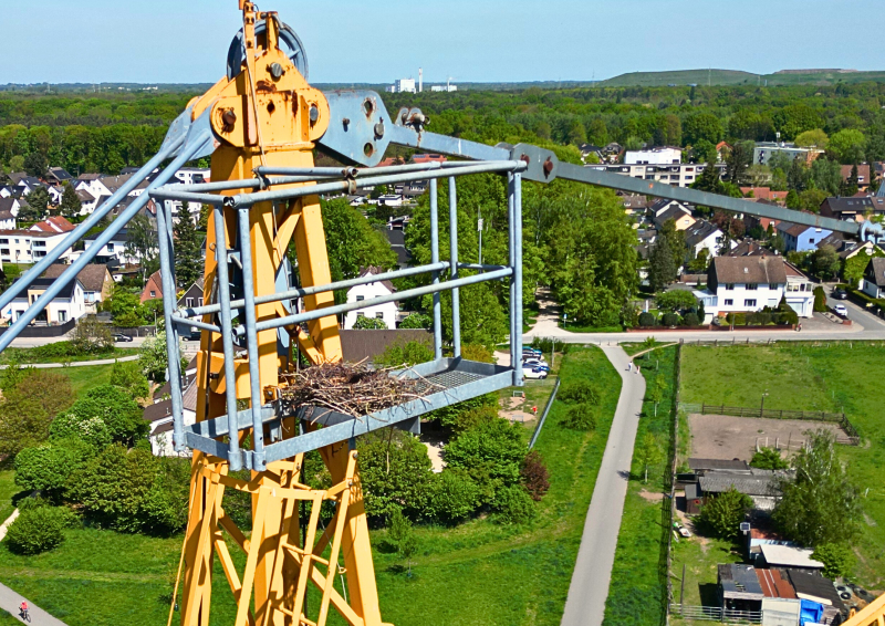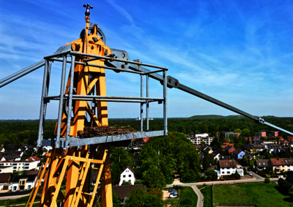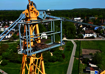 „Beste Aussicht, viel Ruhe – wer kann’s ihnen verdenken?“, sagt Gundlach-Geschäftsführerin Nadine Otto. Nun ist es aber so, dass die Betonarbeiten im Baugebiet Neues Dicherviertel abgeschlossen sind und der Kran eigentlich abgebaut werden sollte. Dennoch lässt Gundlach ihn jetzt stehen, bis die Greifvögel mit ihrem Nachwuchs wieder ausgezogen sind.