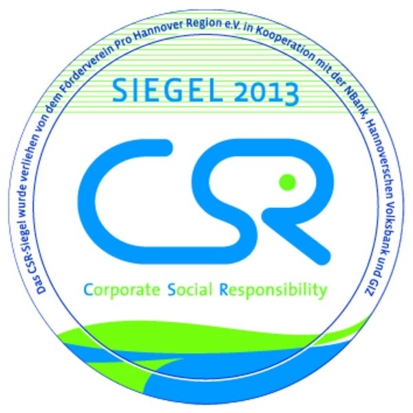 von Pro-Hannover-Region, N-Bank, Hannoverscher Volksbank und GIZ für die CSR-Aktivitäten der Firma sowie deren Einbindung in das Management und in die Unternehmens-Kommunikation.