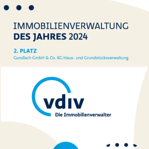Beim 32. Deutschen Verwaltertag in Berlin wurde unsere Gundlach Haus- und Grundstücksverwaltung mit dem 2. Platz ausgezeichnet. In diesem Jahr standen visionäre Ideen und innovative Lösungen im Vordergrund, die die Zukunft der Immobilienbranche mitgestalten. Wir sind stolz darauf, dass unsere Arbeit erneut Anerkennung gefunden hat – nachdem wir bereits 2021 den 1. Platz gewonnen haben.