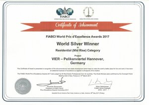FIABCI World Prix d'Excellence: Silber für das Projekt VIER im Pelikanviertel