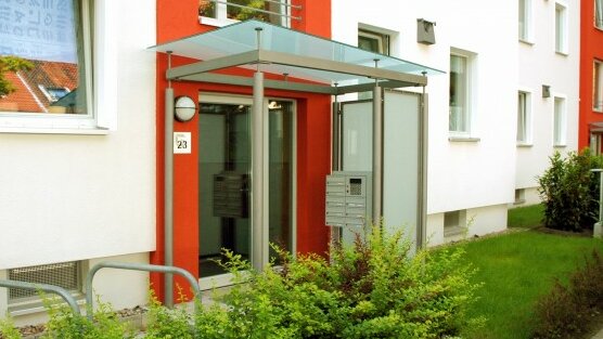 Gleichzeitig wurden im Rahmen dieser energetischen Modernisierung bei allen drei Häusern die Hauseingänge mit neuen Türen, Vordächern und Briefkästen aufgewertet und die Häuser mit frischen Farben verschönert sowie die Grünanlagen aufgearbeitet.
