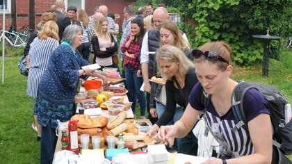 Alle Gundlacher haben mit angepackt. Jetzt haben wir den erfolgreichen Projektstart gemeinsam mit der ASG gefeiert - jeder brachte etwas zum reichhaltigen Buffett mit. Die schön renovierten Räume wurden besichtigt, Seminarraum, Küche, Billardtisch und der schöne Garten bieteten ideale Voraussetzungen für das Integrationsprojekt. Wir freuen uns und wünschen viel Erfolg!