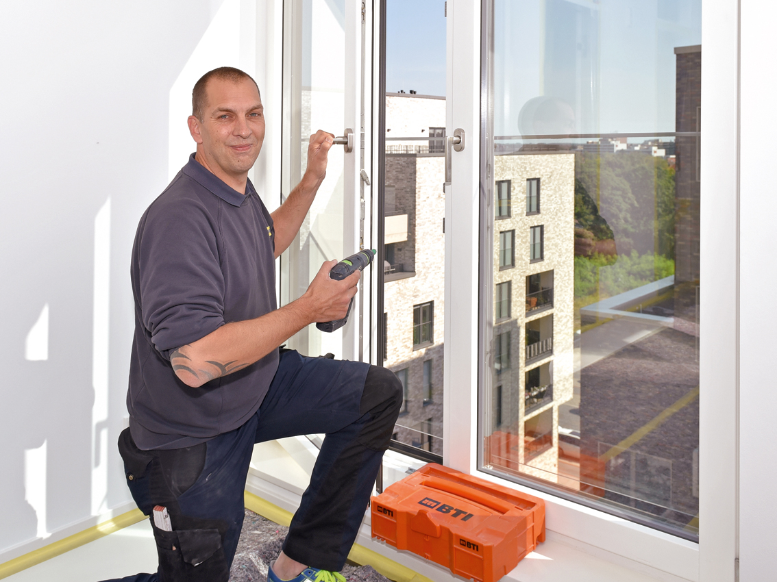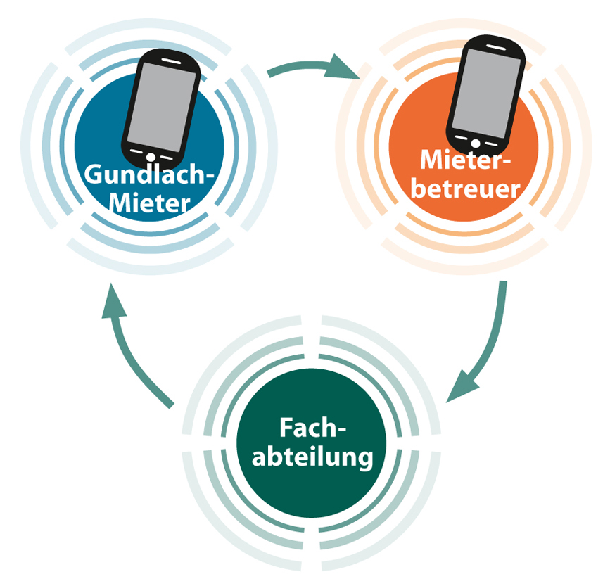 Mieterbetreuer: Neue Zuständigkeiten beschleunigen die Bearbeitung von Mieterwünschen. Mängelmeldungen gehen seit Sommer 2016 direkt an den persönlichen Mieterbetreuer. Dieser kann unmittelbar im Handwerkerportal Aufträge vergeben. Die bisherige Zuständigkeit der Vor-Ort-Service-Mitarbeiter war durch die Parallelbelastung Mängelannahme/Wartungsarbeiten unbefriedigend.