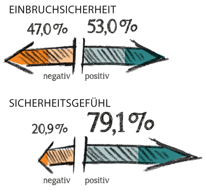 aktivBo: Befragung unter Identifikation des einzelnen Mietobjekts, dadurch trennscharfe Ergebnisse mit der Möglichkeit, individuelle Maßnahmen zu formulieren und nachvollziehbar umzusetzen. 1.597 Mieter (41% der Angeschriebenen) haben den Fragebogen eingesandt. Stärkster Wunsch: mehr Einbruchsicherheit. Erstes Ergebnis: September 2017 wurde das Sicherheitspaket eingeführt.