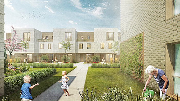 Klima-Komfort-Inseln: beschatteter Quartiersplatz, Hausgärten, Mietergärten