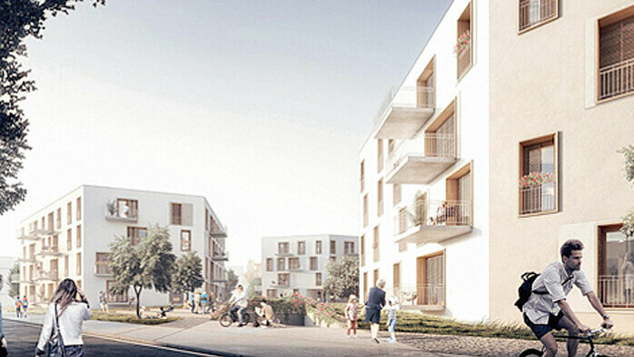 Umfang: 9,2 Hektar Bauland, 25.000m2 Wohnfläche in Reihenhäusern und Geschosswohnungsbauten zum Kauf und zur Miete, für unterschiedliche Einkommen, 20 % als geförderter Sozialwohnungsbau, barrierefreie seniorengerechte Mietwohnungen, Kita mit 4 Gruppen, 2 davon mit Inklusion