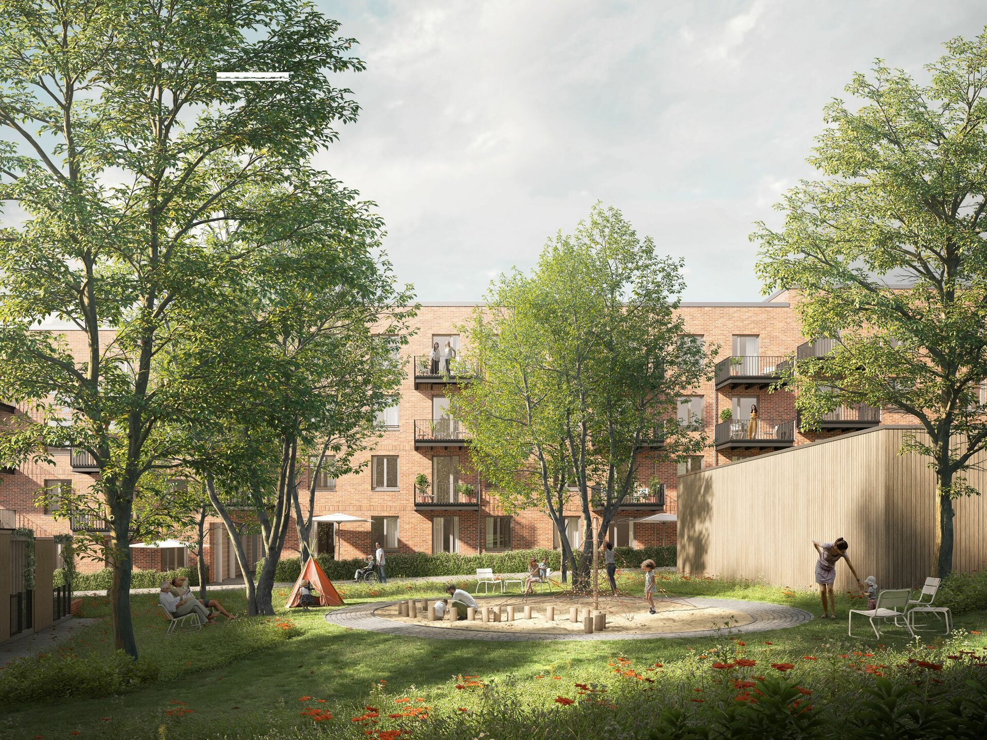 Die großzügig gestalteten Außenanlagen, entworfen von den renommierten nsp Landschaftsarchitekten, bieten Ihnen Raum für Erholung und Begegnung. Betonsitzblöcke, Spielplätze und Sitzbänke laden zum Verweilen und zum Austausch mit Nachbarn ein – ein Quartier, in dem Sie sich von Anfang an zuhause fühlen.
