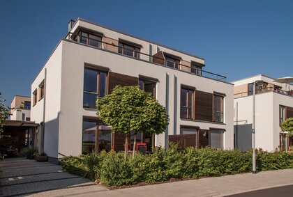 Die Reihen- und Doppelhäuser mit fünf Zimmern verfügen über ca. 140 - 160 m² Wohnfläche. Die außergewöhnliche Architektur, die Ausführung als KfW Effizienzhaus 55 EnEV 2009, die großzügigen Dachterrassen, hochwertige Sanitärausstattungen, lichtdurchflutete Räume und Lüftungsanlagen sind als Besonderheiten heraus zu heben. Wohnen im Grünen mit guter Infrastruktur und Verkehrsanbindung.