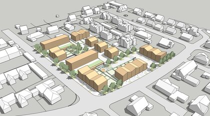 Wohnquartier mit Eigentumswohnungen, Reihen- und Doppelhäusern in Planung
