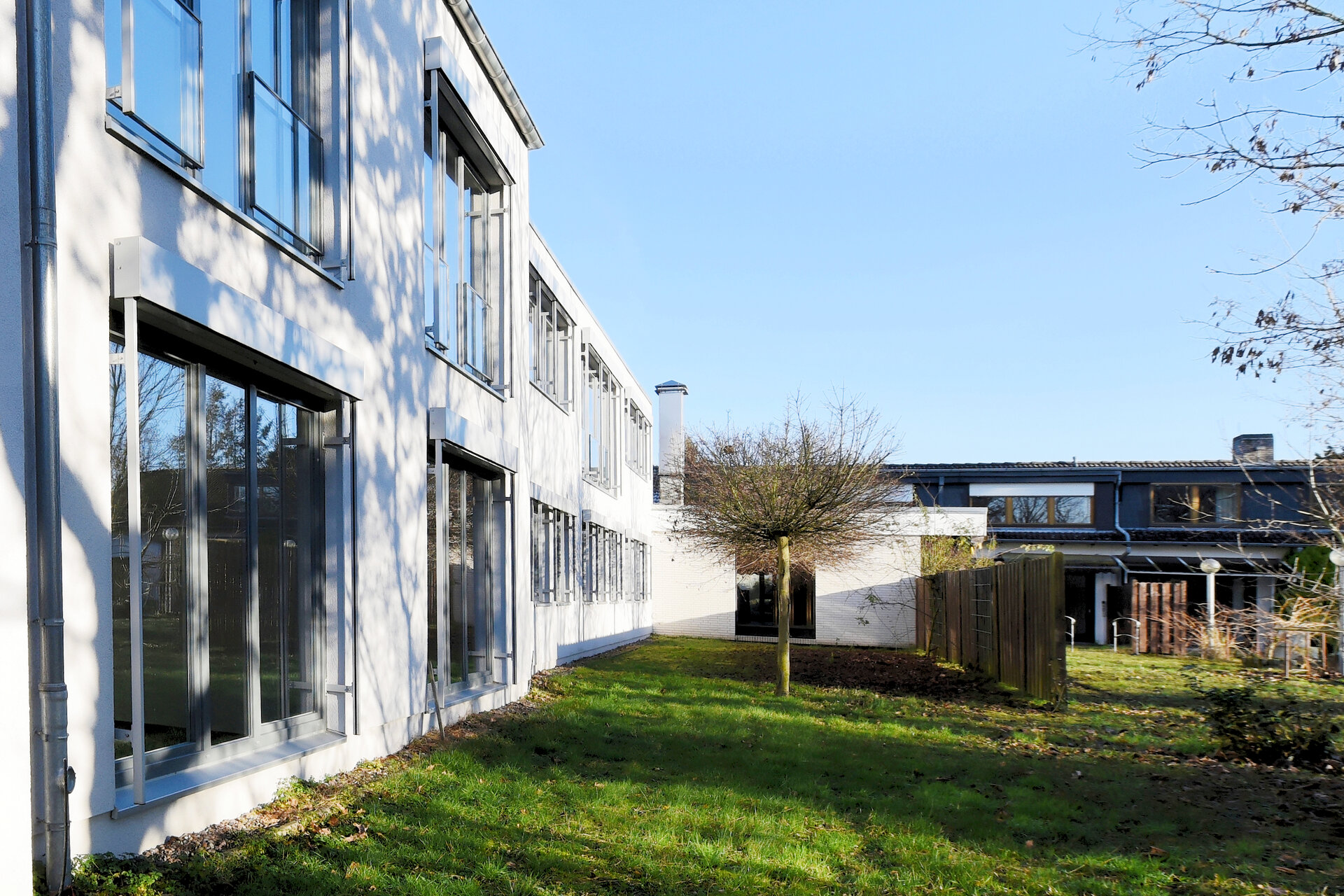 - Gemeinschaftsflächen als Nachbarschaftstreffpunkt: Zwei unterschiedlich gestaltete Freiflächen im Inneren des Wohnquartiers laden zum Plausch und zur gemeinsamen Gartenarbeit ein. Verkehrsfreie Spielflächen für Kinder bieten die ideale Ausgangslage für Bobby-Car-Rennen im Sommer. Vom eigenen, innenliegenden Garten können Sie das Rennen aus beobachten.