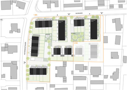 - Wohnquartier für Familien, Paare und Singles: Derzeit ist der Bau von insgesamt 47 Wohneinheiten geplant mit ca. 29 Reihen- und Doppelhäusern sowie 18 Eigentumswohnungen zum Kauf. Die Wohnungen teilen sich auf zwei dreigeschossige Mehrfamilienhäuser auf, während die Reihenhauszeilen zweigeschossig geplant werden.