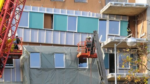 - Die bereits 2000 gedämmte Gebäuderückseite wurde überarbeitet