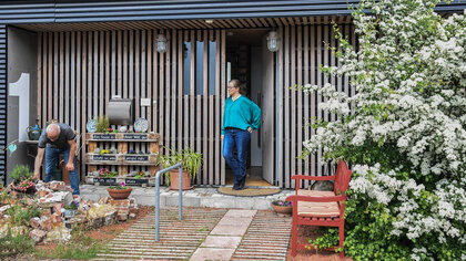 Drei Jahre hatte Gundlachs Öko-Team zusammen mit dem Architektur-Büro Cityförster an dem Leuchtturm-Projekt gefeilt. 2019 zogen die Mieter:innen in den dreistöckigen, lichtdurchfluteten Massivholzbau aus Second-Hand-Materialien. Herausgekommen ist ein futuristisch wirkendes Haus mit mehr als 150 Quadratmetern Wohnfläche, das in seiner ganzen Art und Weise einmalig sein dürfte. „Viele Konstruktionen mussten extra für dieses Haus neu entwickelt werden. Wir waren sehr kreativ und flexibel“, sagt Gundlach-Projektleiterin Corinna Stubendorff.