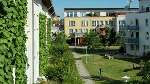 - Großen, autofreier, grüner Innenhof für Jung und Alt mit dezentralen Aufenthaltsplätzen